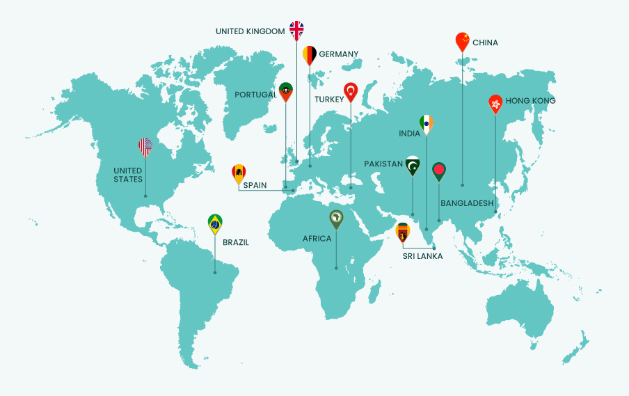 BluWin provides expert support services in Bangladesh, India, Indonesia, Cambodia, Vietnam, Sri Lanka, South Korea, Myanmar, Kenya, Ethiopia, Portugal, Brazil, Italy, Pakistan, Spain, China, Taiwan, Thailand, Turkey, Guatemala, Argentina, Colombia, El Salvador, Honduras, Mexico, Nicaragua and Japan.